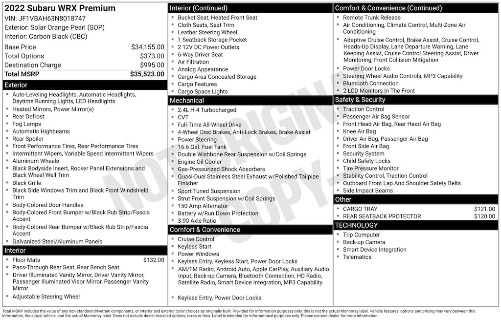 Certified. Solar Orange Pearl 2022 Subaru WRX Premium AWD CVT 2.4L DOHC