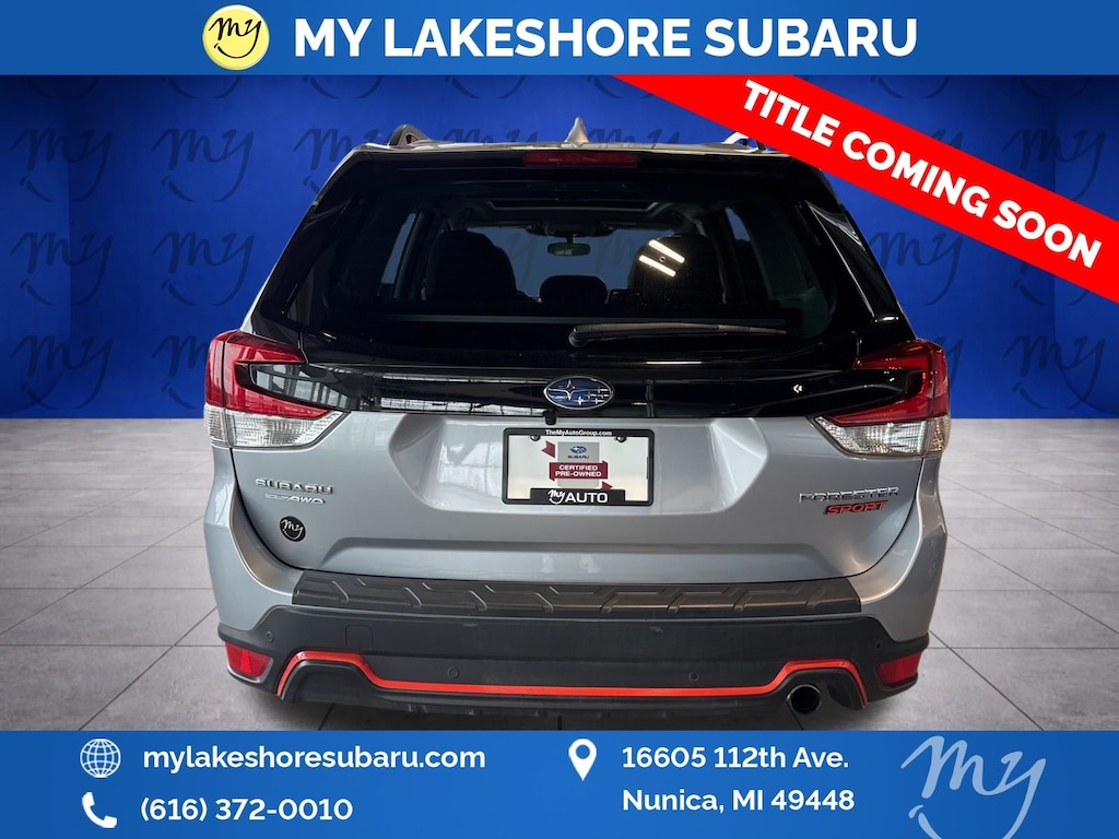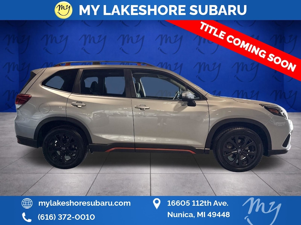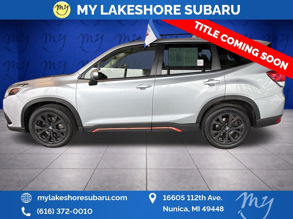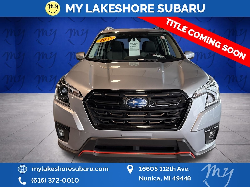 Forester Sport, Ice Silver Metallic, *ALL WHEEL DRIVE*, *APPLE CARPLAY & ANDROID AUTO*, *BACKUP CAMERA*, *EYESIGHT Driver Assist*, *LANE DEPARTURE WARNING*, *LOCAL TRADE*, *OIL CHANGES for LIFE*, *PANORAMIC MOONROOF*, 8" Audio w/harman/kardon & RAB & Power Rear Gate, harman/kardon 9-Speaker Audio System, Power Rear Gate, Radio: Subaru Starlink 8.0" Multimedia Plus System, Reverse Automatic Braking System (RAB). Certified. Ice Silver Metallic 2023 Subaru Forester Sport AWD Lineartronic CVT 2.5L 4-Cylinder DOHC 16V