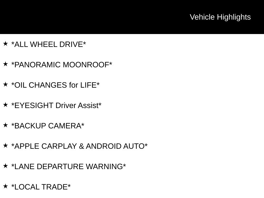My Lakeshore Subaru is your #1 choice in Michigan to get the BEST PRICE on used vehicles and BEST value for your trade. The My Lakeshore Subaru team is ready to provide you with a world-class experience, ensuring that you find the perfect vehicle that fits all your needs. Every vehicle has been through a full safety inspection completed by certified technicians and fully detailed. We sell many makes and models, Certified Pre-owned Subaruâs and Pre-owned Vehicles with years from 2025-2024-2023-2022-2021-2020-2019-2018-2017-2016-2015-2014-2013-2012-2011-2010-2009-2008-2007 and all makes Audi, BMW, Chevrolet, Toyota, Volkswagen, Kia, Hyundai, Mazda, Mercedes, Dodge, Chrysler, Jeep, Ram, Lincoln, Honda, Subaru, and many models like Crosstrek, Outback, Forester, Accent, Legacy, WRX, BRZ, Solterra, and more. Take advantage of our VIP experience by calling 231-867-6957 to schedule a test drive. Read our customer reviews and view our entire selection of preowned vehicles at www.mylakeshoresubaru.com, or stop by today, located at 16605 112th Ave, Nunica, MI 49448. Recent Arrival! 26/33 City/Highway MPG
