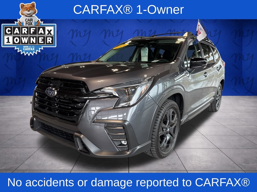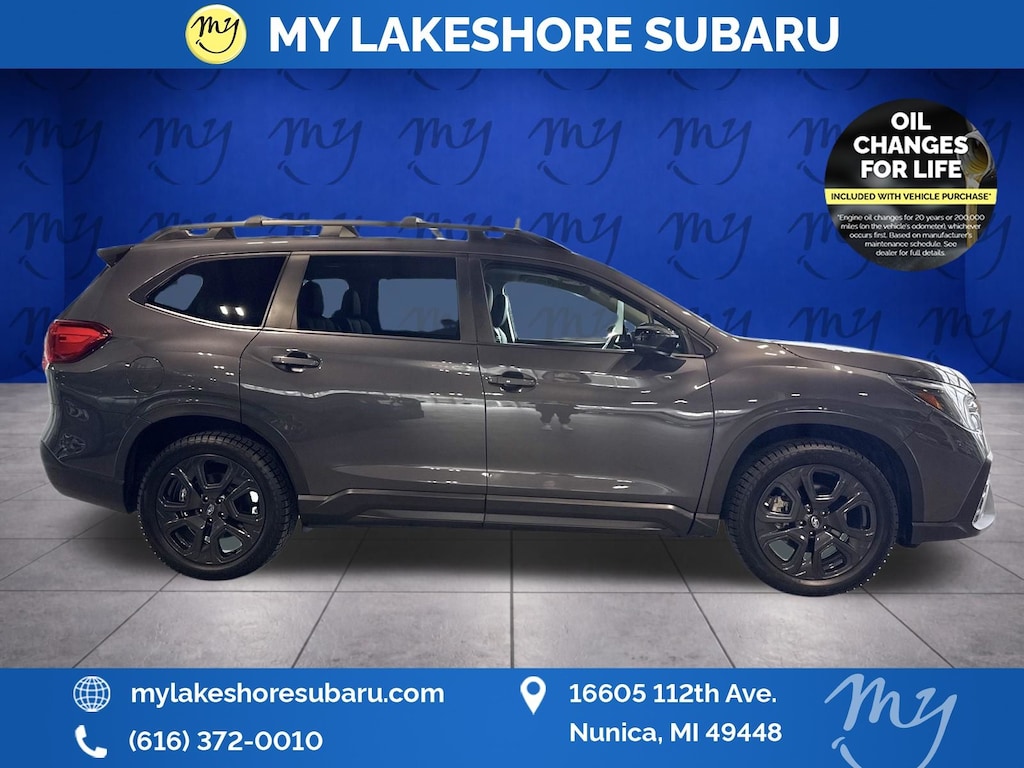 Ascent Onyx Edition, Magnetite Gray Metallic, *ALL WHEEL DRIVE*, *APPLE CARPLAY & ANDROID AUTO*, *BACKUP CAMERA*, *BLIND SPOT MONITORING*, *EYESIGHT Driver Assist*, *HEATED STEERING WHEEL*, *LANE DEPARTURE WARNING*, *LEATHER HEATED POWER SEATS*, *LOCAL TRADE*, *OIL CHANGES for LIFE*, *PANORAMIC MOONROOF*, *TOW PACKAGE*. Certified. Magnetite Gray Metallic 2024 Subaru Ascent Onyx Edition AWD Lineartronic CVT 2.4L 4-Cylinder DOHC 16V