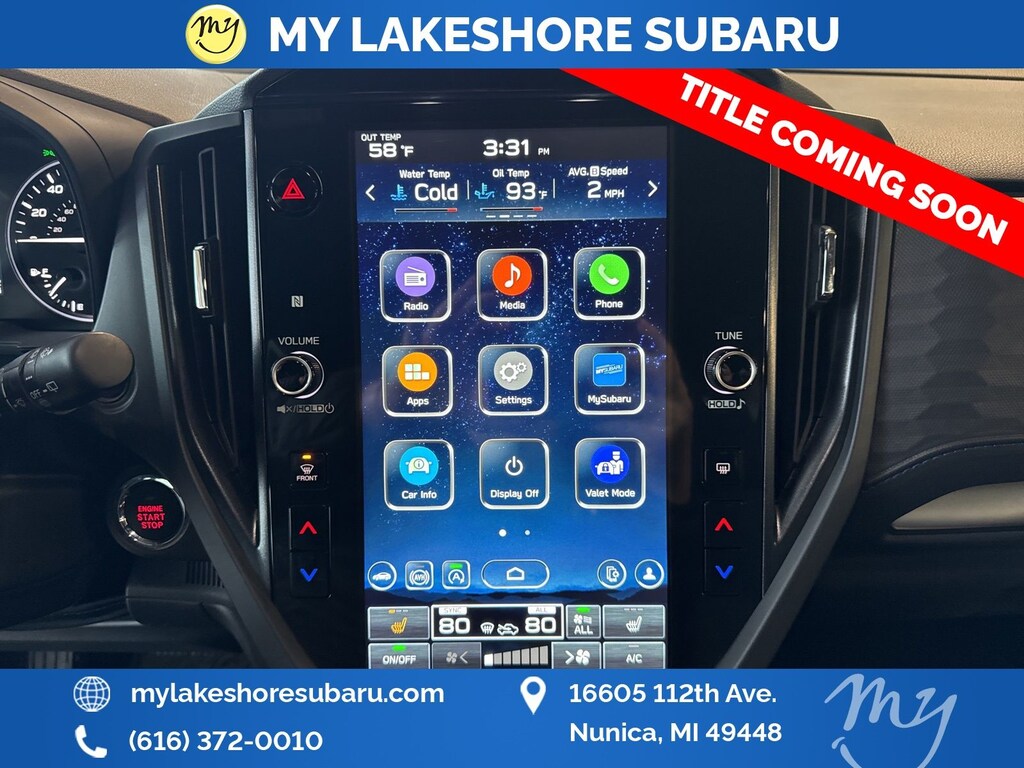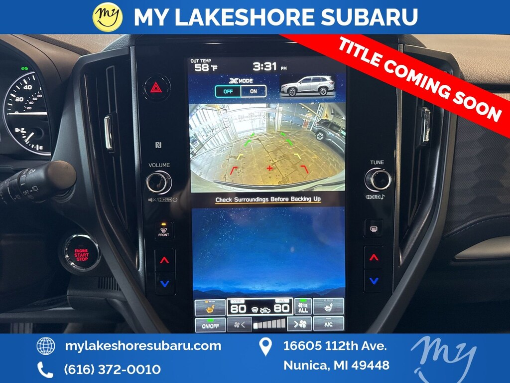 My Lakeshore Subaru is your #1 choice in Michigan to get the BEST PRICE on used vehicles and BEST value for your trade. The My Lakeshore Subaru team is ready to provide you with a world-class experience, ensuring that you find the perfect vehicle that fits all your needs. Every vehicle has been through a full safety inspection completed by certified technicians and fully detailed. We sell many makes and models, Certified Pre-owned Subaruâs and Pre-owned Vehicles with years from 2025-2024-2023-2022-2021-2020-2019-2018-2017-2016-2015-2014-2013-2012-2011-2010-2009-2008-2007 and all makes Audi, BMW, Chevrolet, Toyota, Volkswagen, Kia, Hyundai, Mazda, Mercedes, Dodge, Chrysler, Jeep, Ram, Lincoln, Honda, Subaru, and many models like Crosstrek, Outback, Forester, Accent, Legacy, WRX, BRZ, Solterra, and more. Take advantage of our VIP experience by calling 231-867-6957 to schedule a test drive. Read our customer reviews and view our entire selection of preowned vehicles at www.mylakeshoresubaru.com, or stop by today, located at 16605 112th Ave, Nunica, MI 49448. 26/33 City/Highway MPG