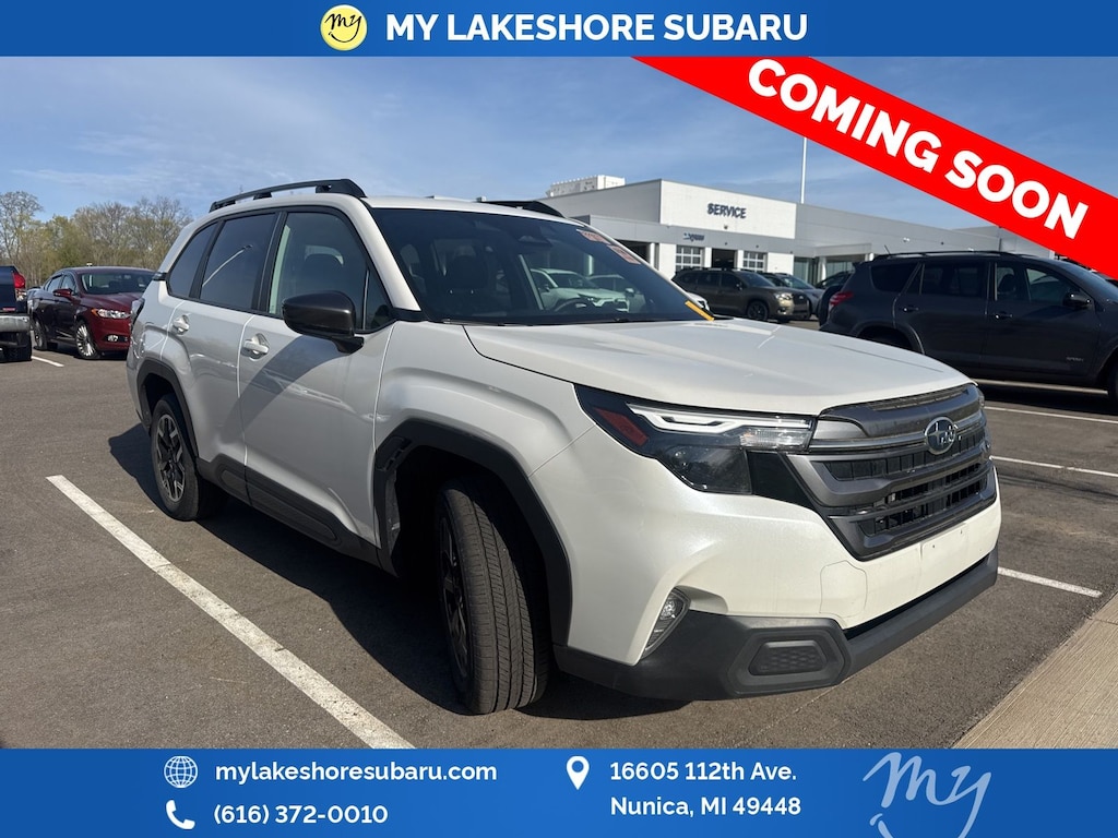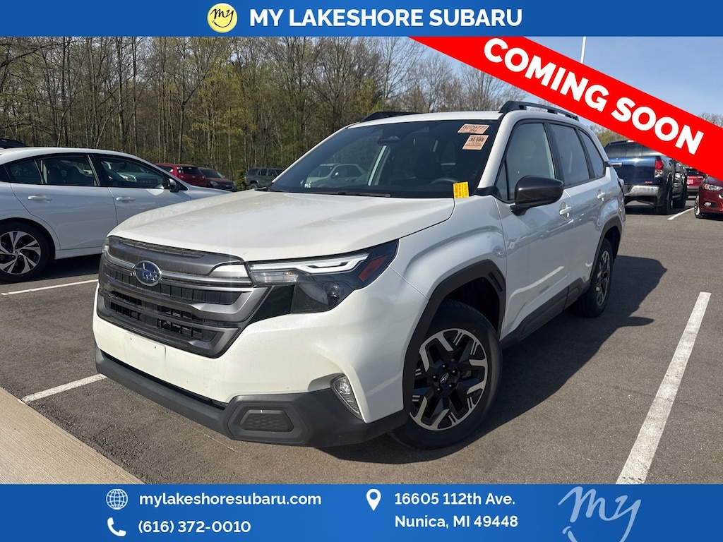 Forester Premium, Crystal White Pearl, *ALL WHEEL DRIVE*, *APPLE CARPLAY & ANDROID AUTO*, *BACKUP CAMERA*, *EYESIGHT Driver Assist*, *HEATED SEATS*, *LANE DEPARTURE WARNING*, *OIL CHANGES for LIFE*, *PANORAMIC MOONROOF*, Automatic Emergency Steering, Blind-Spot Detection (BSD)/RCTA System, Power Rear Gate, Power Rear Gate & Blind Spot Detection w/RCTA. Certified. Crystal White Pearl 2025 Subaru Forester Premium AWD Lineartronic CVT 2.5L 4-Cylinder DOHC 16V