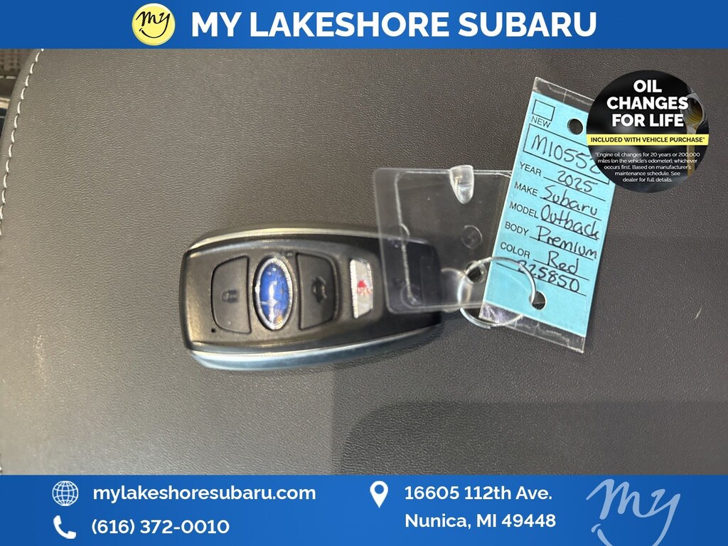 Outback Premium, Crimson Red Pearl, *ALL WHEEL DRIVE*, *APPLE CARPLAY & ANDROID AUTO*, *BACKUP CAMERA*, *BLIND SPOT MONITORING*, *EYESIGHT Driver Assist*, *HEATED SEATS*, *LANE DEPARTURE WARNING*, *MOONROOF*, *OIL CHANGES for LIFE*, Blind Spot Detection (BSD), BSD & RCTA & Keyless Access & Push Button Start, Hands-Free Power Rear Gate, Keyless Access w/Push Button Start, Power Moonroof, Radio: Subaru 11.6" Multimedia System w/Navigation, Rear Cross Traffic Alert (RCTA). Certified. Crimson Red Pearl 2025 Subaru Outback Premium AWD CVT Lineartronic 2.5L 4-Cylinder DOHC 16V