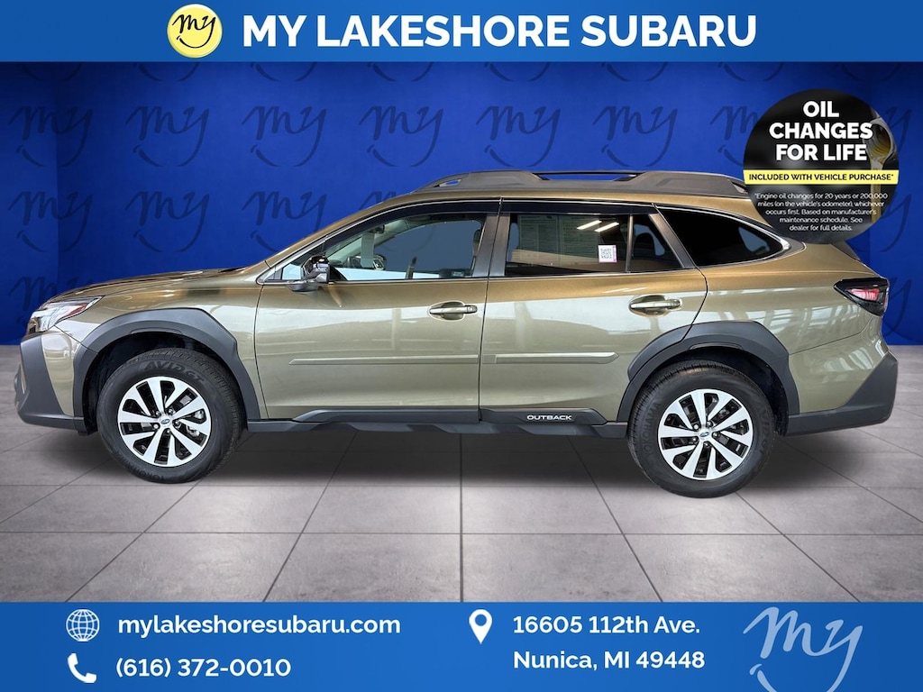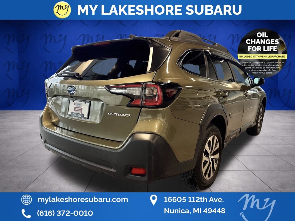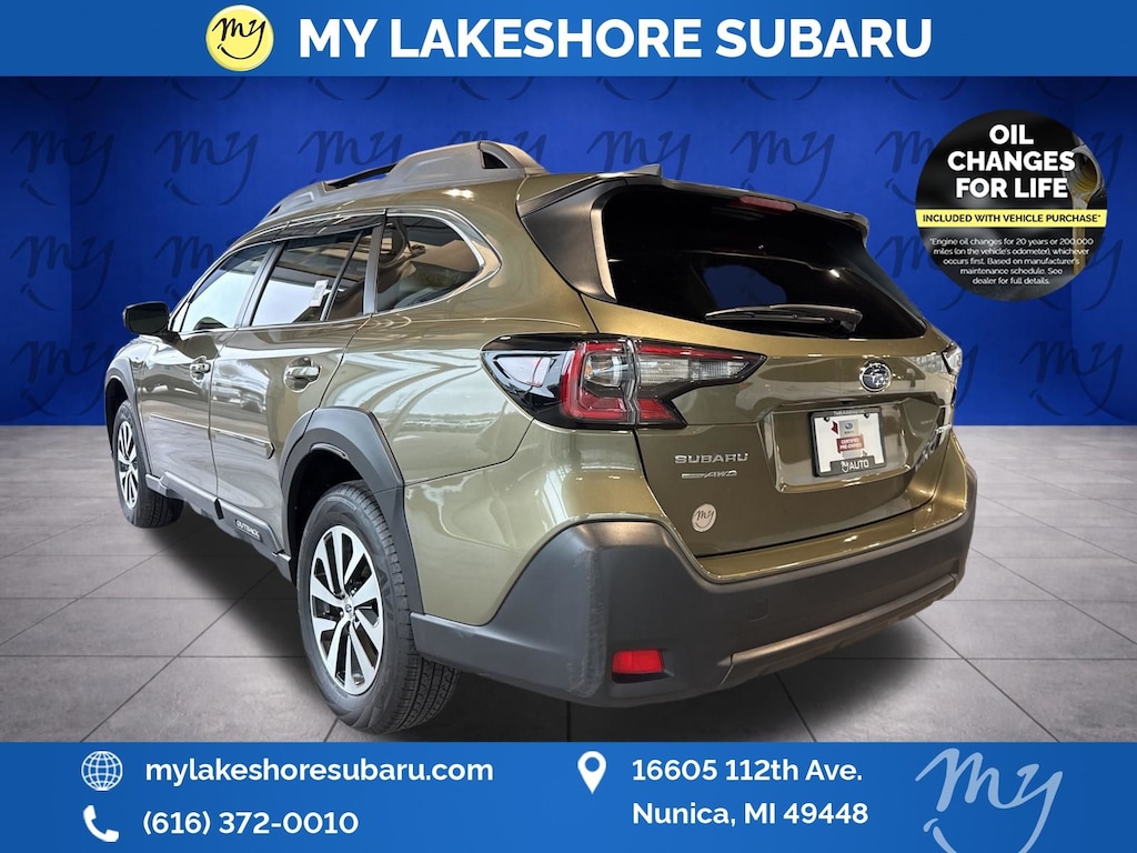Outback Premium, Autumn Green Metallic, *ALL WHEEL DRIVE*, *APPLE CARPLAY & ANDROID AUTO*, *BACKUP CAMERA*, *BLIND SPOT MONITORING*, *EYESIGHT Driver Assist*, *HEATED STEERING WHEEL*, *LANE DEPARTURE WARNING*, *LEATHER HEATED POWER SEATS*, *MOONROOF*, *OIL CHANGES for LIFE*, *PREMIUM SOUND*, Blind Spot Detection (BSD), BSD w/RCTA & Keyless Access & Push Button Start, Hands-Free Power Rear Gate, Keyless Access w/Push Button Start, Rear Cross Traffic Alert (RCTA). Certified. Autumn Green Metallic 2025 Subaru Outback Premium AWD CVT Lineartronic 2.5L 4-Cylinder DOHC 16V