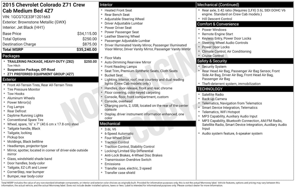 Colorado Z71, 4WD, Brownstone Metallic, *BACKUP CAMERA*, *HEATED SEATS*, *LOCAL TRADE*, Heavy-Duty Trailering Package. Brownstone Metallic 2015 Chevrolet Colorado Z71 4WD 6-Speed Automatic 3.6L V6 DGI DOHC VVT