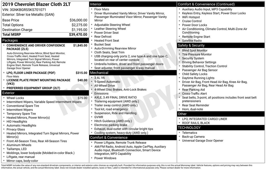 Recent Arrival! Silver Ice Metallic 2019 Chevrolet Blazer 3.6L V6 SIDI DOHC VVT AWD