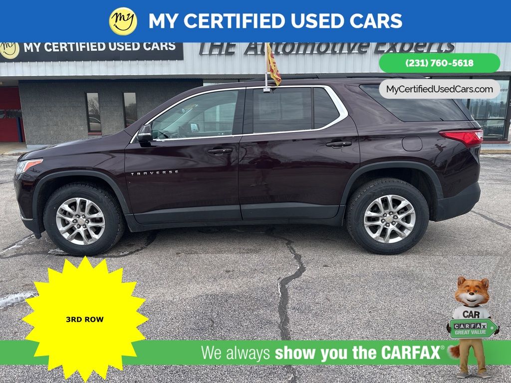 *SUPER BUY* **2020 CHEVROLET TRAVERSE 3LT AWD***, *FULLY SERVICED* *THIRD ROW SEATING* *REMOTE START* *LEATHER HEATED POWER SEATS*, *BLIND SPOT MONITORING SYSTEM*, *BLUETOOTH*, *LANE DEPARTURE WARNING*, *REARVIEW CAMERA*, *BLUETOOTH*, *WIRELESS APPLE CARPLAY & ANDROID AUTO*, Automatic Emergency Braking, Automatic Heated Steering Wheel, Driver Confidence II Package, Following Distance Indicator, Forward Collision Alert, Front Pedestrian Braking, HD Surround Vision, IntelliBeam Auto High Beam Control Headlamps, Lane Keep Assist w/Lane Departure Warning, Navigation System, Power Liftgate, Preferred Equipment Group 3LT. MY Certified Used Cars of Muskegon is your #1 choice in Michigan to get the BEST PRICE on used vehicles and BEST value for your trade. The MY Certified Used Cars team is ready to provide you with a world-class experience, ensuring that you find the perfect vehicle that fits all your needs. Every vehicle has been through a full safety inspection completed by certified technicians and fully detailed. We sell many makes and models, Pre-Owned Vehicles with years from 2025-2024-2023-2022-2021-2020-2019-2018-2017-2016-2015-2014-2013-2012-2011-2010-2009-2008-2007 and all makes Audi, BMW, Chevrolet, Toyota, Volkswagen, Kia, Hyundai, Mercedes, Dodge, Chrysler, Jeep, Ram, Lincoln, Honda, Subaru, and many models like Bronco, Bronco Sport, Edge, Escapes, Expedition, Explorer, Fusions, Focus, Flex, F-150 Series, F-250, F-350, Super Duty Diesel Trucks, Maverick, Mustang MACH-E, Mustang, Ranger, Transit, Wrangler, Grand Cherokee, Grand Cherokee L, Wagoneer, Gladiator, Grand Caravan, RAM, RAM HEMI, and more. Take advantage of our VIP experience by calling 231-760-5618 to schedule a test drive. Read our customer reviews at www.mycertifiedusedcars.com/testimonials or view our entire selection of preowned vehicles at www.mycertifiedusedcars.com, or stop by today, located at 3692 Airline Rd. Muskegon, MI 49444. Black Cherry Metallic 2020 Chevrolet Traverse 3LT AWD 9-Speed Automatic 3.6L V6 SIDI VVT