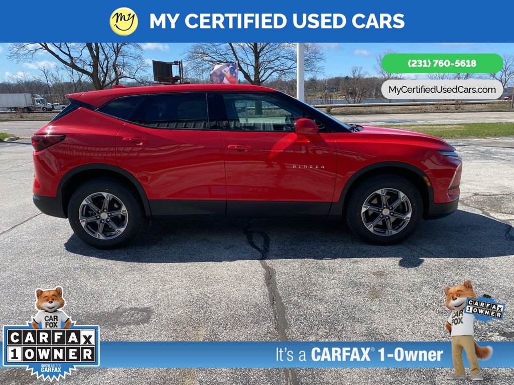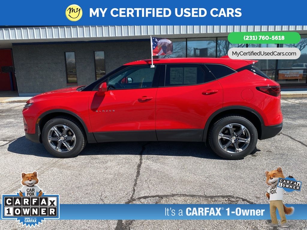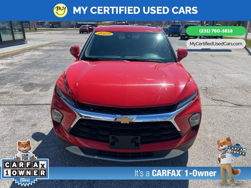**ONE OWNER** *SUPER BUY* ***2023 CHEVROLET BLAZER 2LT AWD*** *FULLY SERVICED* *REMOTE START* **AUTOMATIC EMERGENCY BRAKING**, **FORWARD COLLISION ALERT**, **INTELLIBEAM-AUTO HIGH BEAM**, *APPLE CARPLAY & ANDROID AUTO*, *HANDSFREE BLUETOOTH*, *LANE DEPARTURE WARNING*, *NAVIGATION SYSTEM*, *REARVIEW CAMERA*, Navigation System, Preferred Equipment Group 2LT. MY Certified Used Cars of Muskegon is your #1 choice in Michigan to get the BEST PRICE on used vehicles and BEST value for your trade. The MY Certified Used Cars team is ready to provide you with a world-class experience, ensuring that you find the perfect vehicle that fits all your needs. Every vehicle has been through a full safety inspection completed by certified technicians and fully detailed. We sell many makes and models, Pre-Owned Vehicles with years from 2025-2024-2023-2022-2021-2020-2019-2018-2017-2016-2015-2014-2013-2012-2011-2010-2009-2008-2007 and all makes Audi, BMW, Chevrolet, Nissan, Toyota, Volkswagen, Kia, Hyundai, Mercedes, Dodge, Chrysler, Jeep, Ram, Lincoln, Honda, Subaru, and many models like Bronco, Bronco Sport, Edge, Escapes, Expedition, Explorer, Fusions, Focus, Flex, F-150 Series, F-250, F-350, Super Duty Diesel Trucks, Maverick, Altima, RAV4, 4 Runner, Mustang, Ranger, Transit, Wrangler, Grand Cherokee, Grand Cherokee L, Wagoneer, Gladiator, Grand Caravan, RAM, RAM HEMI, and more. Take advantage of our VIP experience by calling 231-760-5618 to schedule a test drive. Read our customer reviews at www.mycertifiedusedcars.com/testimonials or view our entire selection of preowned vehicles at www.mycertifiedusedcars.com, or stop by today, located at 3692 Airline Rd. Muskegon, MI 49444. CARFAX One-Owner. Red Hot 2023 Chevrolet Blazer LT AWD 9-Speed Automatic with Overdrive 2.0L Turbocharged