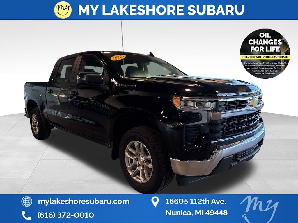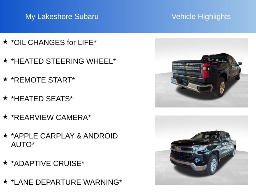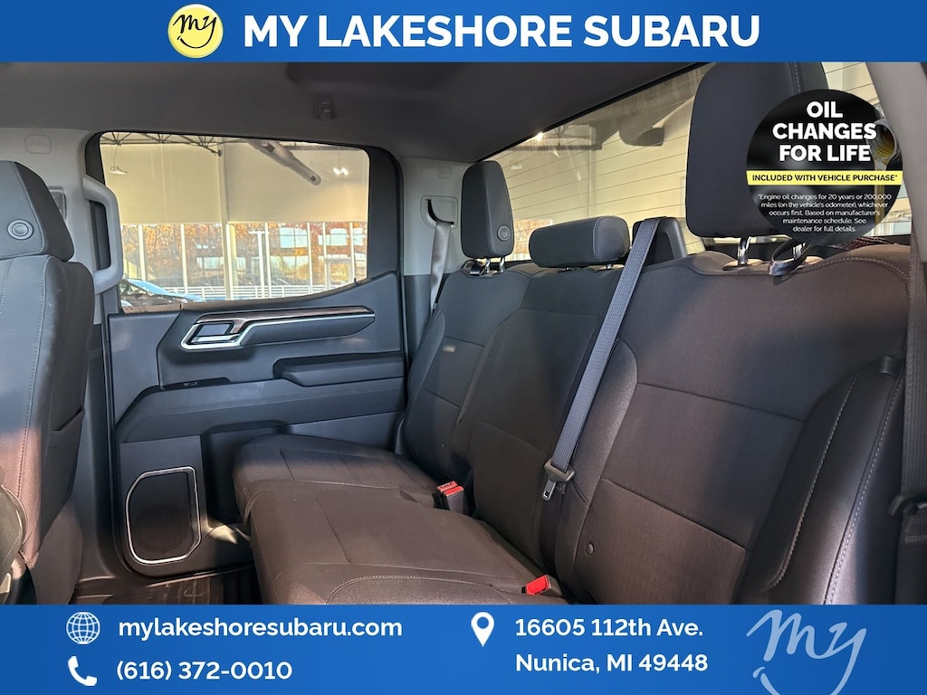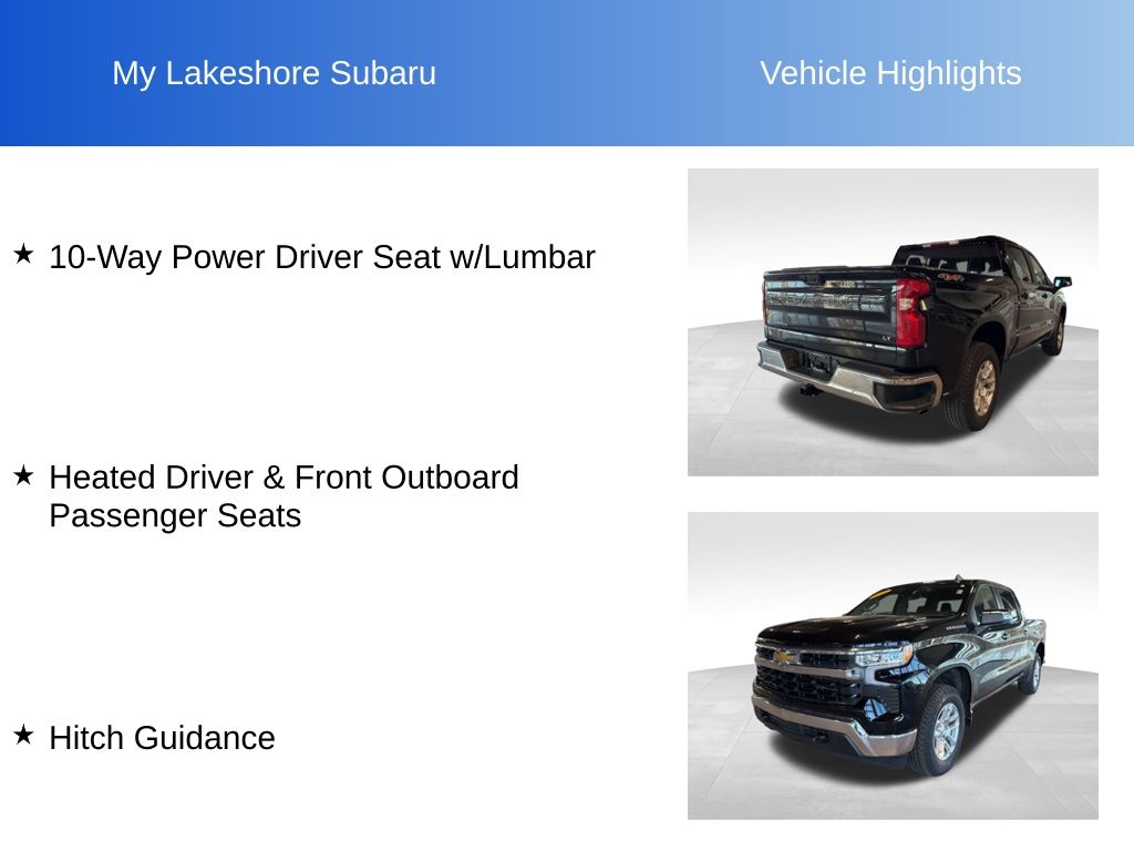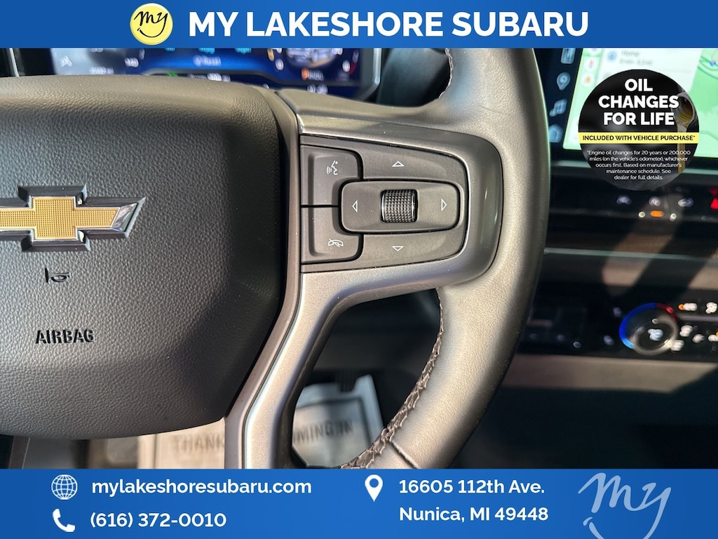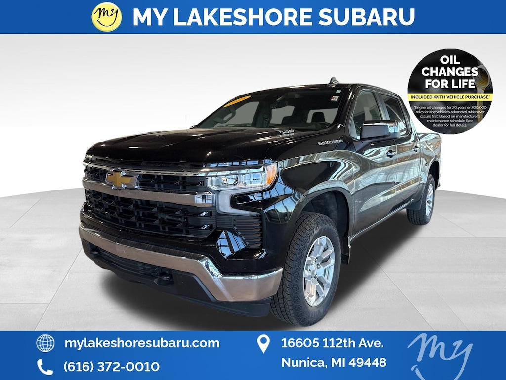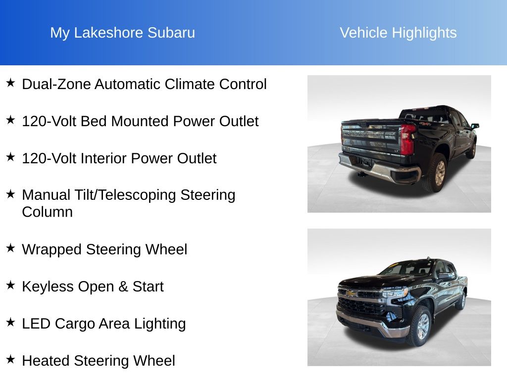 Silverado 1500 LT, 2.7L I4 Turbocharged DOHC 16V LEV3-SULEV30 310hp, Black, *ADAPTIVE CRUISE*, *APPLE CARPLAY & ANDROID AUTO*, *FULLY SERVICE*, *HEATED SEATS*, *HEATED STEERING WHEEL*, *LANE DEPARTURE WARNING*, *LOCAL TRADE*, *OIL CHANGES for LIFE*, *REARVIEW CAMERA*, *REMOTE START*, 10-Way Power Driver Seat w/Lumbar, 120-Volt Bed Mounted Power Outlet, 120-Volt Interior Power Outlet, Convenience Package, Dual Rear USB Ports (Charge Only), Dual-Zone Automatic Climate Control, Heated Driver & Front Outboard Passenger Seats, Heated Steering Wheel, Hitch Guidance, Keyless Open & Start, LED Cargo Area Lighting, Manual Tilt/Telescoping Steering Column, Trailering Package, Wrapped Steering Wheel. Black 2025 Chevrolet Silverado 1500 LT 4WD 8-Speed Automatic 2.7L I4 Turbocharged DOHC 16V LEV3-SULEV30 310hp