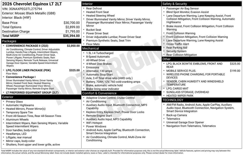 Mosaic Black Metallic 2026 Chevrolet Equinox LT 1.5L DOHC AWD Odometer is 1091 miles below market average!