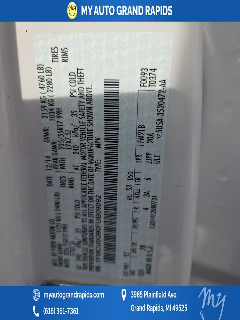 Oxford White 2015 Ford Escape SE EcoBoost 2.0L I4 GTDi DOHC Turbocharged VCT FWD Odometer is 28293 miles below market average!