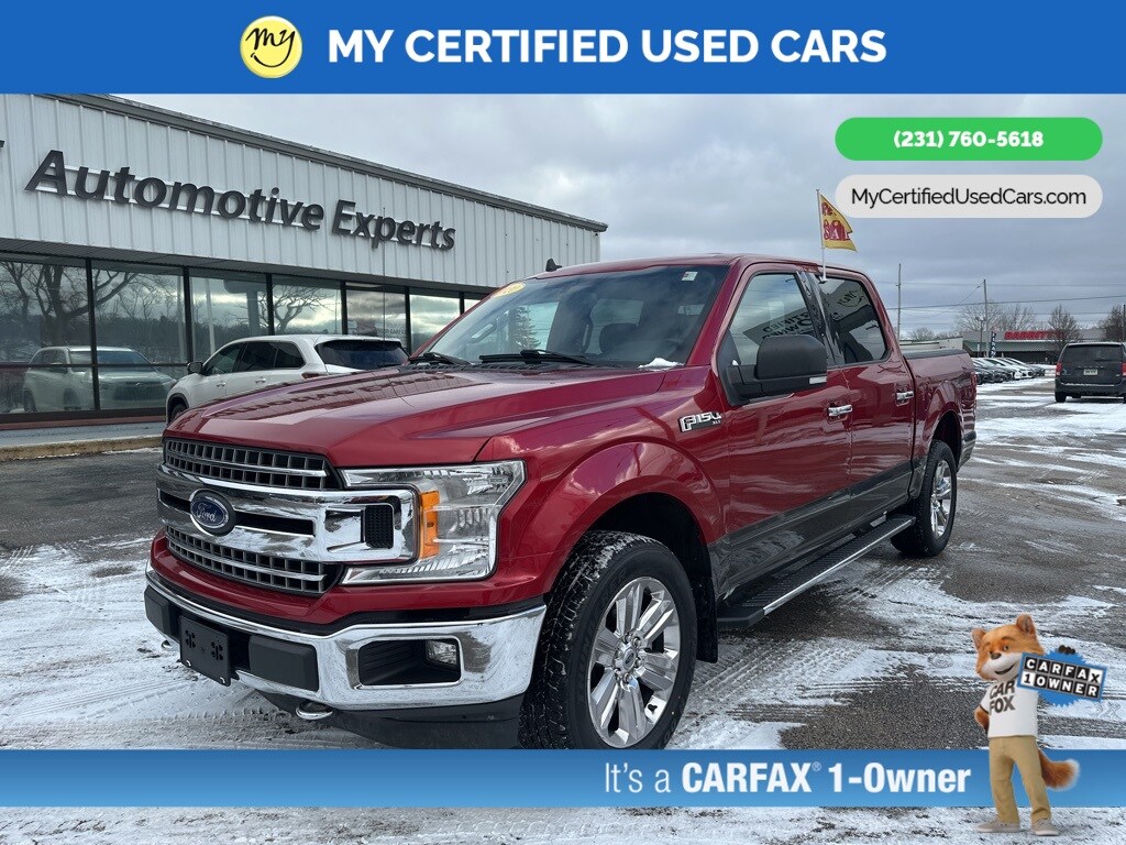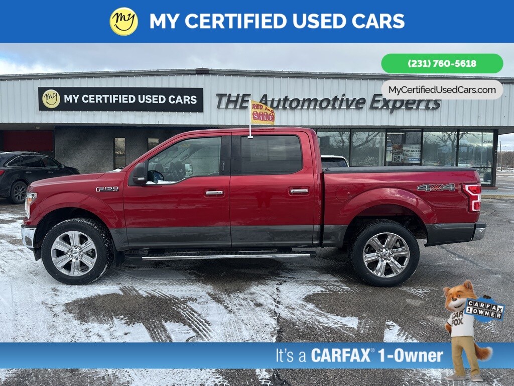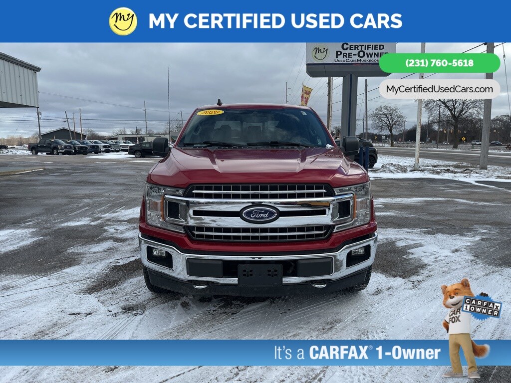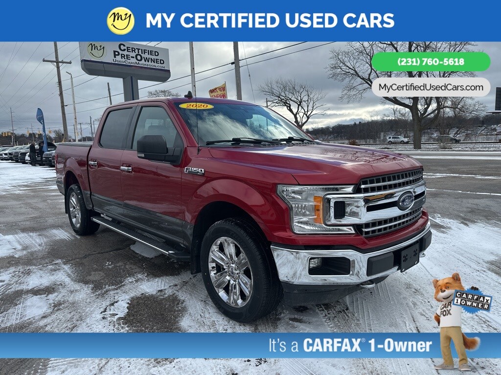 *FULLY SERVICED* ***2020 FORD F-150 XLT 4X4***, *SUPER BUY* **2.7L V6 EcoBoost Payload Package** *REMOTE START* *APPLE CARPLAY & ANDROID AUTO*, *HEATED SEATS*, *LANE DEPARTURE WARNING*, *REARVIEW CAMERA*, 10-Way Power Driver & Passenger Seats, 2-Bar Style Grille w/Chrome 2 Minor Bars, 4.2" Productivity Screen in Instrument Cluster, Auto-Dimming Rear-View Mirror, Chrome Door & Tailgate Handles w/Body-Color Bezel, Chrome Step Bars, Class IV Trailer Hitch Receiver, Cloth 40/20/40 Front Seat, Electronic Locking w/3.55 Axle Ratio, Engine Block Heater, Equipment Group 302A Luxury, Extended Range 36 Gallon Fuel Tank, Exterior Parking Camera Rear, Fixed Backlight w/Privacy Glass, GVWR: 6,600 lbs Payload Package, Heated Front Seats, Leather-Wrapped Steering Wheel, LED Box Lighting, Power Glass Heated Sideview Mirrors, Power-Adjustable Pedals, Power-Sliding Rear Window, Pro Trailer Backup Assist, Rear Under-Seat Storage, Rear Window Defroster, Single-Tip Chrome Exhaust, SiriusXM Radio, Tough Bed Spray-In Bedliner, Trailer Tow Package, Upgraded Front Stabilizer Bar, Wheels: 18" Chrome-Like PVD, XLT Chrome Appearance Package, XLT Power Equipment Group. MY Certified Used Cars of Muskegon is your #1 choice in Michigan to get the BEST PRICE on used vehicles and BEST value for your trade. The MY Certified Used Cars team is ready to provide you with a world-class experience, ensuring that you find the perfect vehicle that fits all your needs. Every vehicle has been through a full safety inspection completed by certified technicians and fully detailed. We sell many makes and models, Pre-Owned Vehicles with years from 2025-2024-2023-2022-2021-2020-2019-2018-2017-2016-2015-2014-2013-2012-2011-2010-2009-2008-2007 and all makes Audi, BMW, Chevrolet, Toyota, Volkswagen, Kia, Hyundai, Mercedes, Dodge, Chrysler, Jeep, Ram, Lincoln, Honda, Subaru, and many models like Bronco, Bronco Sport, Edge, Escapes, Expedition, Explorer, Fusions, Focus, Flex, F-150 Series, F-250, F-350, Super Duty Diesel Trucks, Maverick, Mustang MACH-E, Mustang, Ranger, Transit, Wrangler, Grand Cherokee, Grand Cherokee L, Wagoneer, Gladiator, Grand Caravan, RAM, RAM HEMI, and more. Take advantage of our VIP experience by calling 231-760-5618 to schedule a test drive. Read our customer reviews at www.mycertifiedusedcars.com/testimonials or view our entire selection of preowned vehicles at www.mycertifiedusedcars.com, or stop by today, located at 3692 Airline Rd. Muskegon, MI 49444. CARFAX One-Owner. Red 2020 Ford F-150 XLT 4WD 10-Speed Automatic 2.7L V6 EcoBoost