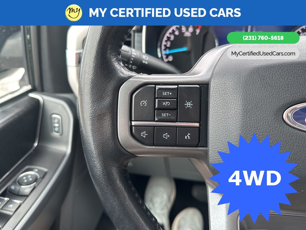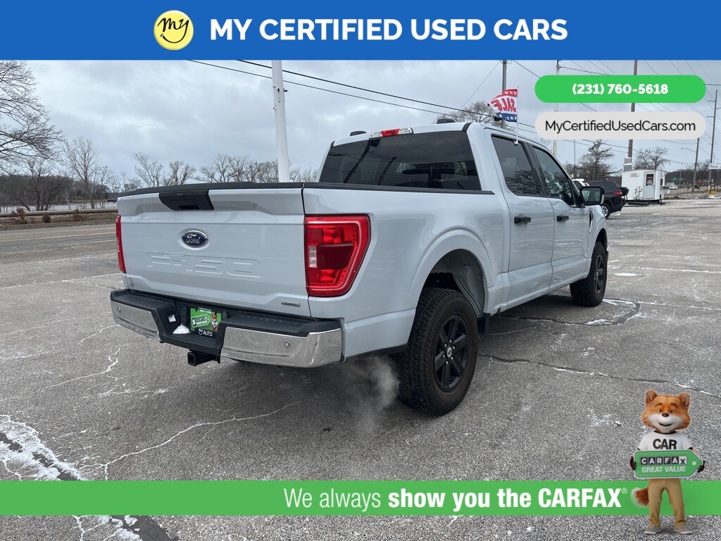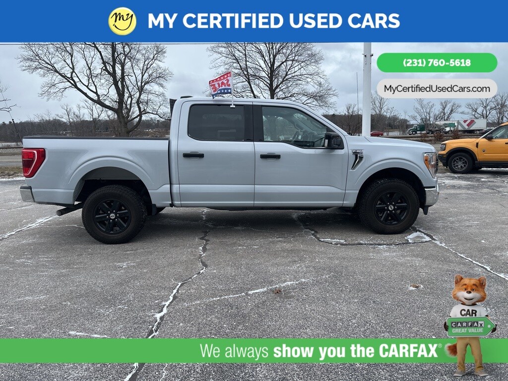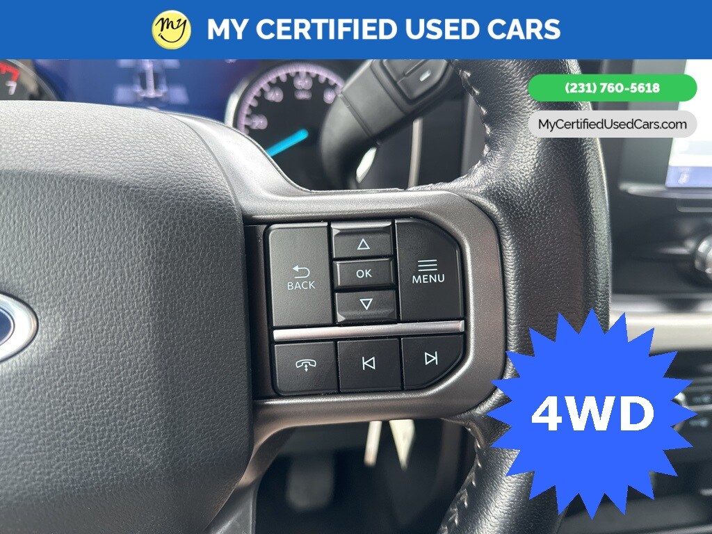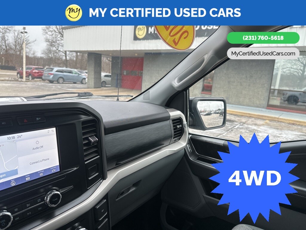 *FULLY SERVICED* ***2021 FORD F-150 XLT 4WD***, ***3.5L ECOBOOST*** *NEW TIRES* *VERY CLEAN* , *BACKUP SENSORS*, *LANE DEPARTURE WARNING*, *REARVIEW CAMERA*, *ADAPTIVE CRUISE*, *APPLE CARPLAY & ANDROID AUTO* 3.31 Axle Ratio, GVWR: 7,050 lbs Payload Package 8-Way Power Driver's Seat w/Power Lumbar, 8" Productivity Screen in Instrument Cluster, Auto-Dimming Rear-View Mirror, Class IV Trailer Hitch Receiver, Dual Zone Automatic Temperature Control, Equipment Group 301A Mid, Integrated Trailer Brake Controller, Leather-Wrapped Steering Wheel, Power Glass Heated Sideview Mirrors, Pro Trailer Backup Assist, Radio: AM/FM SiriusXM w/360L, Rear Under-Seat Storage, SecuriCode Drivers Side Keyless-Entry Keypad, SYNC 4 w/Enhanced Voice Recognition, Trailer Tow Package. MY Certified Used Cars of Muskegon is your #1 choice in Michigan to get the BEST PRICE on used vehicles and BEST value for your trade. The MY Certified Used Cars team is ready to provide you with a world-class experience, ensuring that you find the perfect vehicle that fits all your needs. Every vehicle has been through a full safety inspection completed by certified technicians and fully detailed. We sell many makes and models, Pre-Owned Vehicles with years from 2025-2024-2023-2022-2021-2020-2019-2018-2017-2016-2015-2014-2013-2012-2011-2010-2009-2008-2007 and all makes Audi, BMW, Chevrolet, Toyota, Volkswagen, Kia, Hyundai, Mercedes, Dodge, Chrysler, Jeep, Ram, Lincoln, Honda, Subaru, and many models like Bronco, Bronco Sport, Edge, Escapes, Expedition, Explorer, Fusions, Focus, Flex, F-150 Series, F-250, F-350, Super Duty Diesel Trucks, Maverick, Mustang MACH-E, Mustang, Ranger, Transit, Wrangler, Grand Cherokee, Grand Cherokee L, Wagoneer, Gladiator, Grand Caravan, RAM, RAM HEMI, and more. Take advantage of our VIP experience by calling 231-760-5618 to schedule a test drive. Read our customer reviews at www.mycertifiedusedcars.com/testimonials or view our entire selection of preowned vehicles at www.mycertifiedusedcars.com, or stop by today, located at 3692 Airline Rd. Muskegon, MI 49444. White Metallic 2021 Ford F-150 XLT 4WD 10-Speed Automatic 3.5L V6 EcoBoost