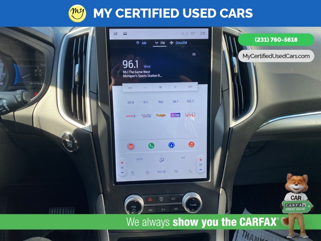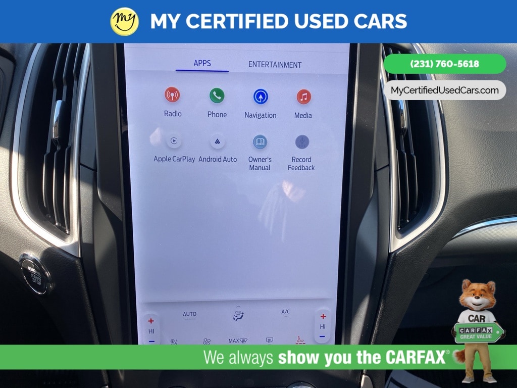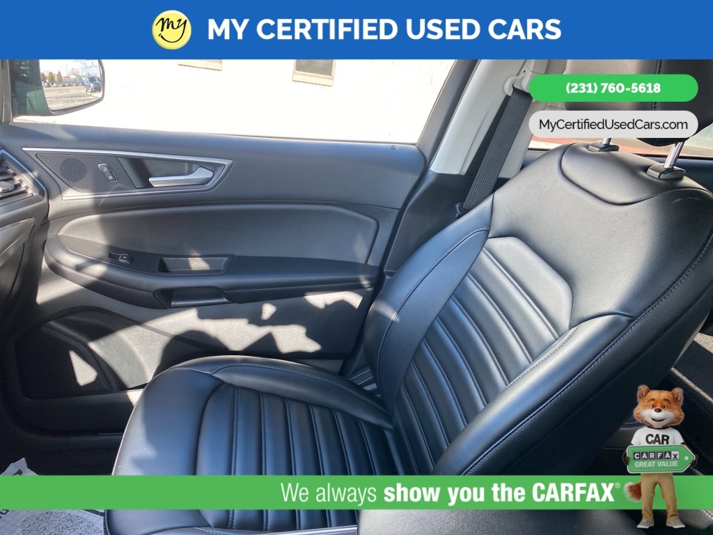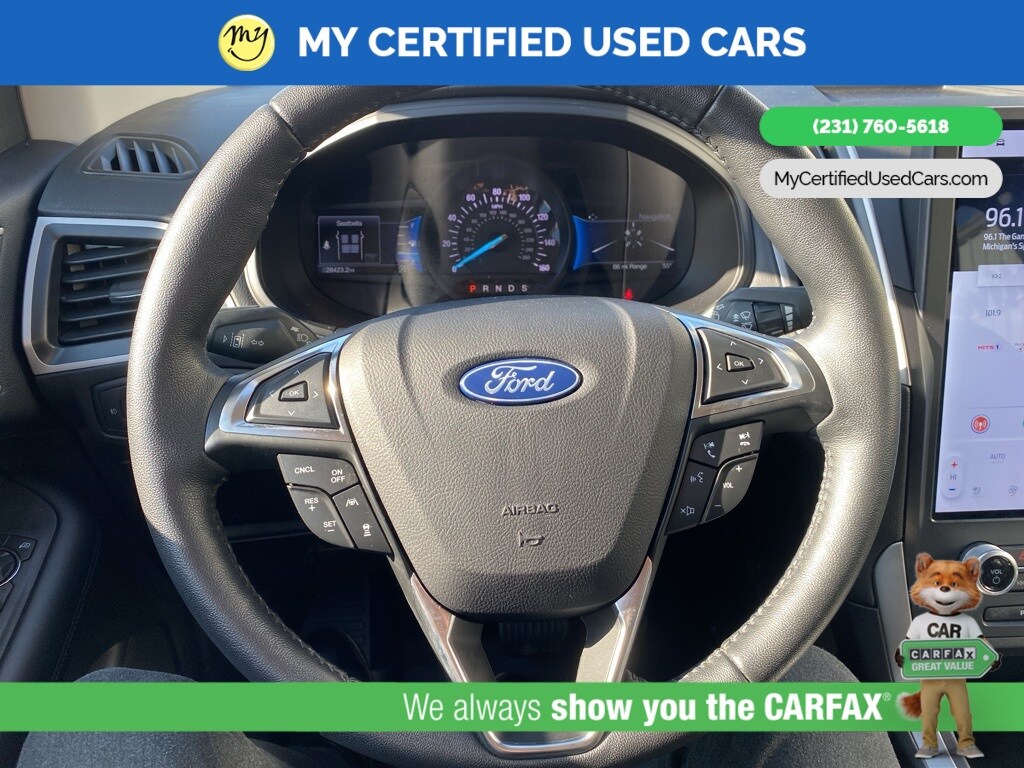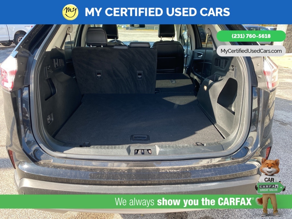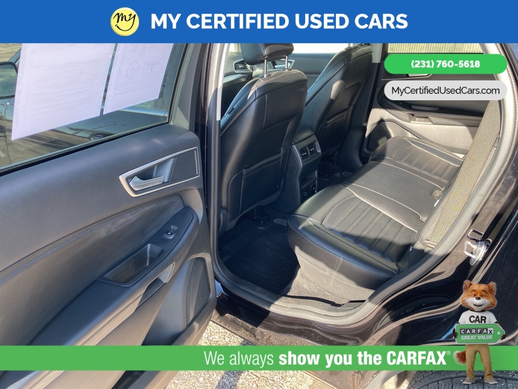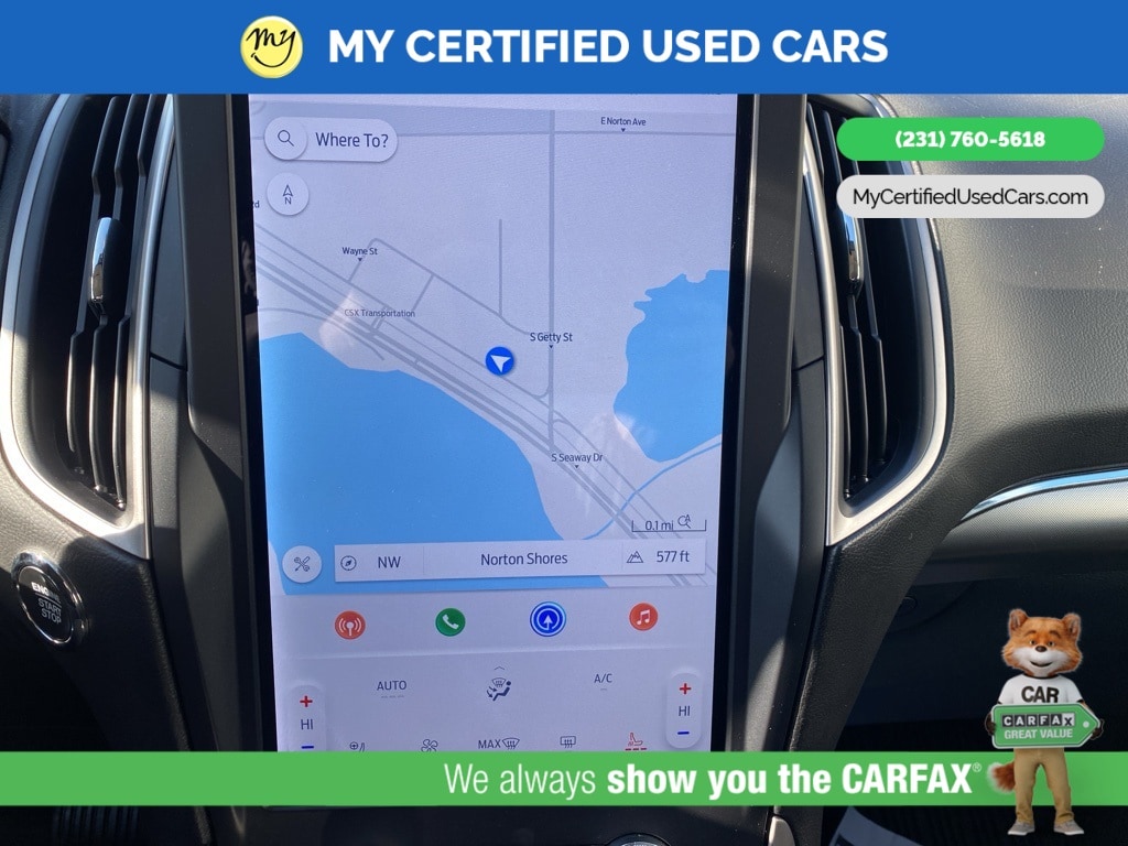 MY Certified Used Cars of Muskegon is your #1 choice in Michigan to get the BEST PRICE on used vehicles and BEST value for your trade. The MY Certified Used Cars team is ready to provide you with a world-class experience, ensuring that you find the perfect vehicle that fits all your needs. Every vehicle has been through a full safety inspection completed by certified technicians and fully detailed. We sell many makes and models, Pre-Owned Vehicles with years from 2025-2024-2023-2022-2021-2020-2019-2018-2017-2016-2015-2014-2013-2012-2011-2010-2009-2008-2007 and all makes Audi, BMW, Chevrolet, Toyota, Volkswagen, Kia, Hyundai, Mercedes, Dodge, Chrysler, Jeep, Ram, Lincoln, Honda, Subaru, and many models like Bronco, Bronco Sport, Edge, Escapes, Expedition, Explorer, Fusions, Focus, Flex, F-150 Series, F-250, F-350, Super Duty Diesel Trucks, Maverick, Mustang MACH-E, Mustang, Ranger, Transit, Wrangler, Grand Cherokee, Grand Cherokee L, Wagoneer, Gladiator, Grand Caravan, RAM, RAM HEMI, and more. Take advantage of our VIP experience by calling 231-760-5618 to schedule a test drive. Read our customer reviews at www.mycertifiedusedcars.com/testimonials or view our entire selection of preowned vehicles at www.mycertifiedusedcars.com, or stop by today, located at 3692 Airline Rd. Muskegon, MI 49444. CARFAX One-Owner. Black Metallic 2022 Ford Edge SEL AWD 8-Speed Automatic EcoBoost 2.0L I4 GTDi DOHC Turbocharged VCT