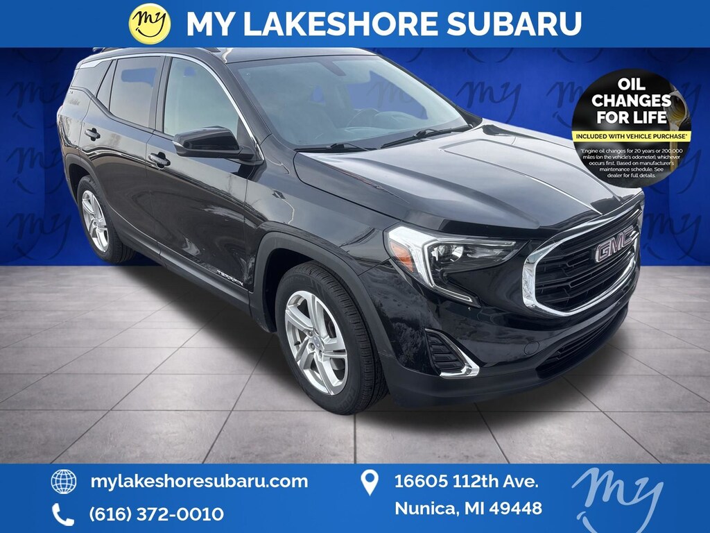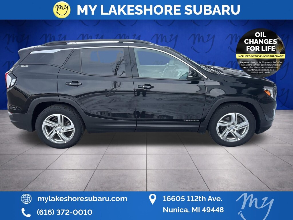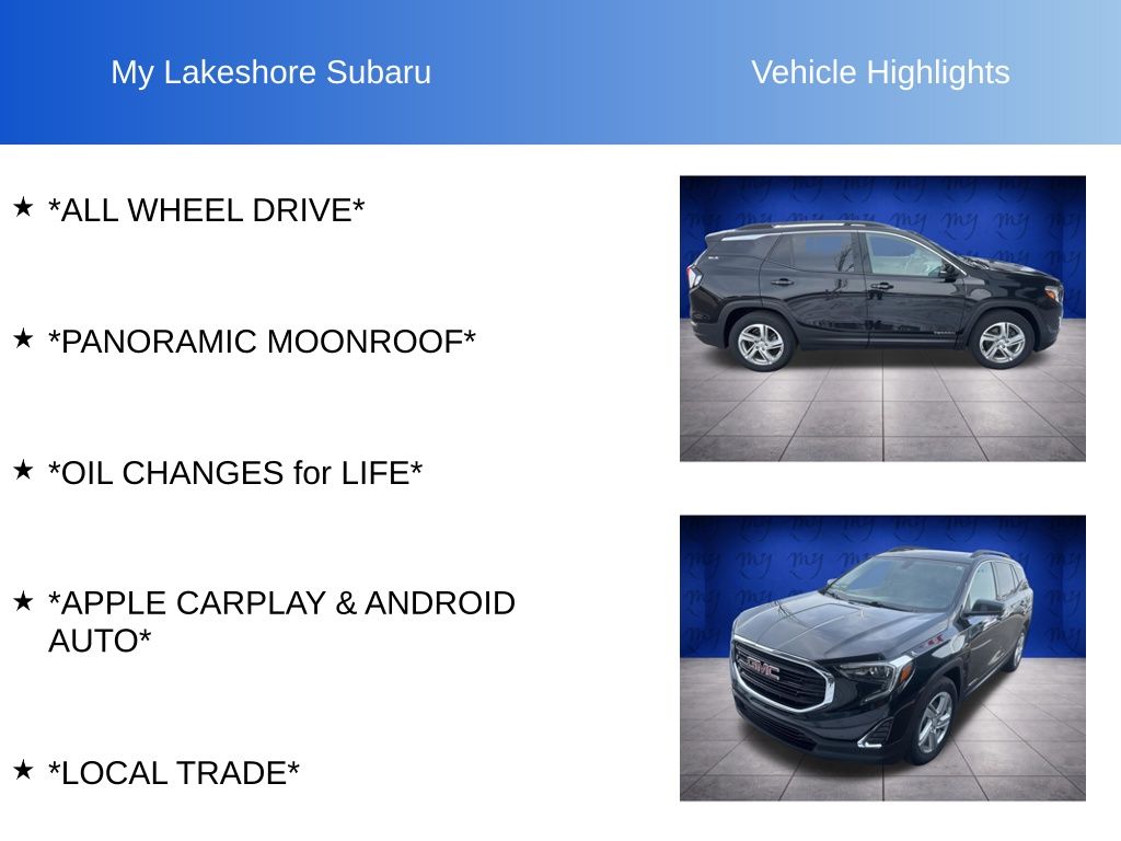 Terrain SLE, AWD, Ebony Twilight Metallic, *ALL WHEEL DRIVE*, *APPLE CARPLAY & ANDROID AUTO*, *LOCAL TRADE*, *OIL CHANGES for LIFE*, *PANORAMIC MOONROOF*. Ebony Twilight Metallic 2019 GMC Terrain SLE AWD 9-Speed Automatic 2.0L Turbocharged