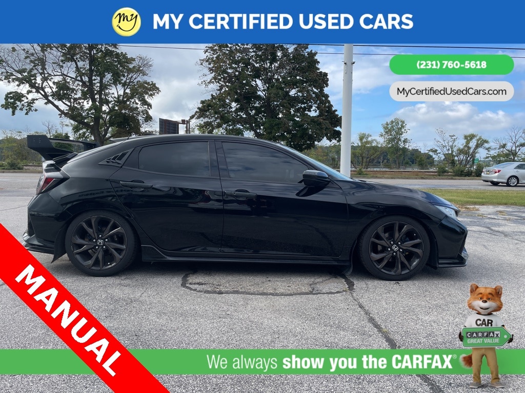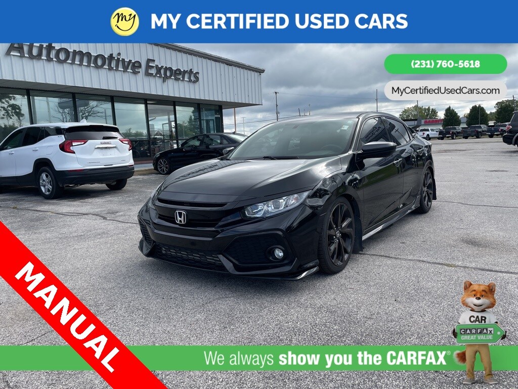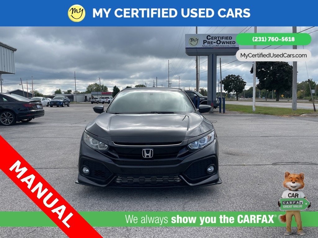 Black Cloth, *LOCAL TRADE*, *REARVIEW CAMERA*, *SUPER BUY*, *VERY CLEAN*, Automatic temperature control. MY Certified Used Cars of Muskegon is your #1 choice in Michigan to get the BEST PRICE on used vehicles and BEST value for your trade. The MY Certified Used Cars team is ready to provide you with a world-class experience, ensuring that you find the perfect vehicle that fits all your needs. Every vehicle has been through a full safety inspection completed by certified technicians and fully detailed. We sell many makes and models, Pre-Owned Vehicles with years from 2025-2024-2023-2022-2021-2020-2019-2018-2017-2016-2015-2014-2013-2012-2011-2010-2009-2008-2007 and all makes Audi, BMW, Chevrolet, Toyota, Volkswagen, Kia, Hyundai, Mercedes, Dodge, Chrysler, Jeep, Ram, Lincoln, Honda, Subaru, and many models like Bronco, Bronco Sport, Edge, Escapes, Expedition, Explorer, Fusions, Focus, Flex, F-150 Series, F-250, F-350, Super Duty Diesel Trucks, Maverick, Mustang MACH-E, Mustang, Ranger, Transit, Wrangler, Grand Cherokee, Grand Cherokee L, Wagoneer, Gladiator, Grand Caravan, RAM, RAM HEMI, and more. Take advantage of our VIP experience by calling 231-760-5618 to schedule a test drive. Read our customer reviews at www.mycertifiedusedcars.com/testimonials or view our entire selection of preowned vehicles at www.mycertifiedusedcars.com, or stop by today, located at 3692 Airline Rd. Muskegon, MI 49444. Black 2018 Honda Civic Sport FWD 6-Speed Manual 1.5L I4 DOHC 16V