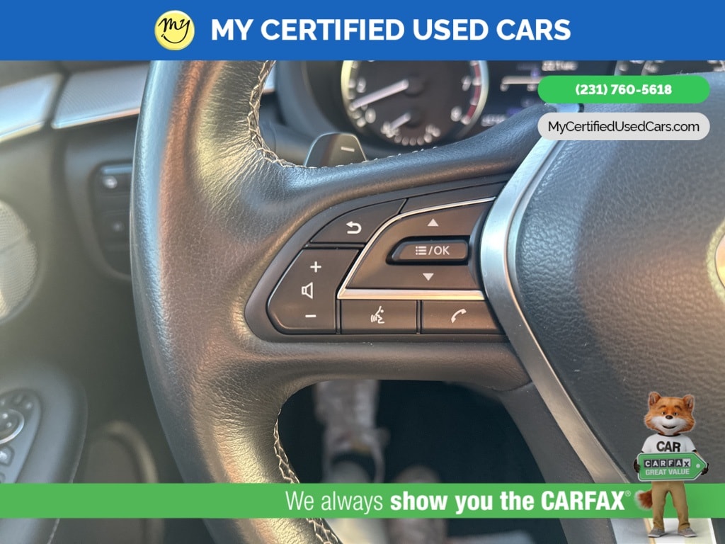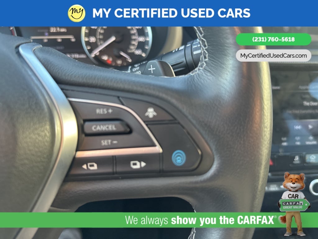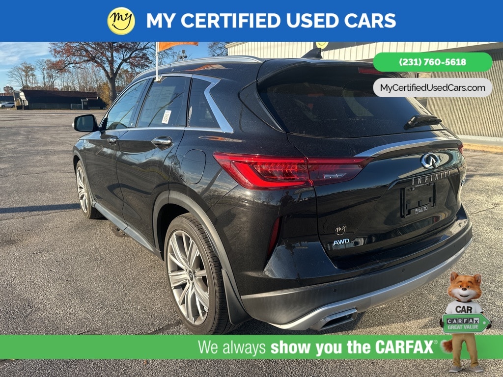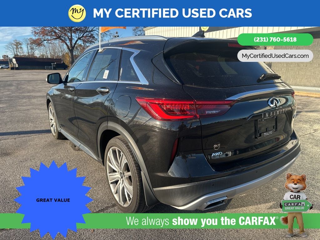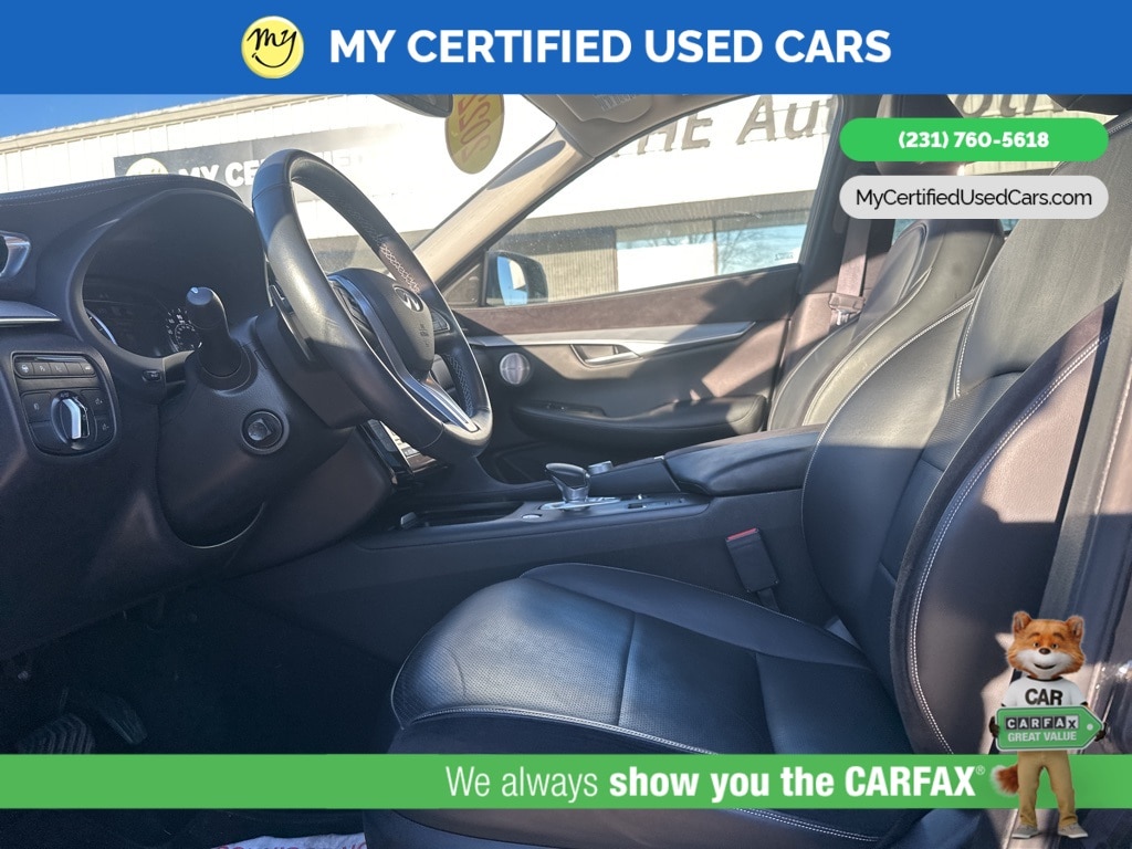 ***This 2022 INFINITI QX50 Sensory is LOADED with OPTIONS (*PANORAMIC MOONROOF*), 4D Sport Utility, AWD, *APPLE CARPLAY & ANDROID AUTO*, *BACKUP CAMERA*, *BACKUP SENSORS*, *HEATED SEATS*, *LEATHER HEATED POWER SEATS*, *NAVIGATION SYSTEM*, *PREMIUM SOUND*, *PREMIUM WHEELS*, *REMOTE START*, *VERY CLEAN*, Heated front seats, Memory seat, Navigation system: INFINITI InTouch Navigation, Power Liftgate, Power moonroof, Radio: Bose Performance Series Audio System, Ventilated front seats, Wheels: 20" Silver Painted Machine Finished. MY Certified Used Cars of Muskegon is your #1 choice in Michigan to get the BEST PRICE on used vehicles and BEST value for your trade. The MY Certified Used Cars team is ready to provide you with a world-class experience, ensuring that you find the perfect vehicle that fits all your needs. Every vehicle has been through a full safety inspection completed by certified technicians and fully detailed. We sell many makes and models, Pre-Owned Vehicles with years from 2025-2024-2023-2022-2021-2020-2019-2018-2017-2016-2015-2014-2013-2012-2011-2010-2009-2008-2007 and all makes Audi, BMW, Chevrolet, Toyota, Volkswagen, Kia, Hyundai, Mercedes, Dodge, Chrysler, Jeep, Ram, Lincoln, Honda, Subaru, and many models like Bronco, Bronco Sport, Edge, Escapes, Expedition, Explorer, Fusions, Focus, Flex, F-150 Series, F-250, F-350, Super Duty Diesel Trucks, Maverick, Mustang MACH-E, Mustang, Ranger, Transit, Wrangler, Grand Cherokee, Grand Cherokee L, Wagoneer, Gladiator, Grand Caravan, RAM, RAM HEMI, and more. Take advantage of our VIP experience by calling 231-760-5618 to schedule a test drive. Read our customer reviews at www.mycertifiedusedcars.com/testimonials or view our entire selection of preowned vehicles at www.mycertifiedusedcars.com, or stop by today, located at 3692 Airline Rd. Muskegon, MI 49444. CARFAX One-Owner. Mineral Black 2022 INFINITI QX50 Sensory AWD CVT I4