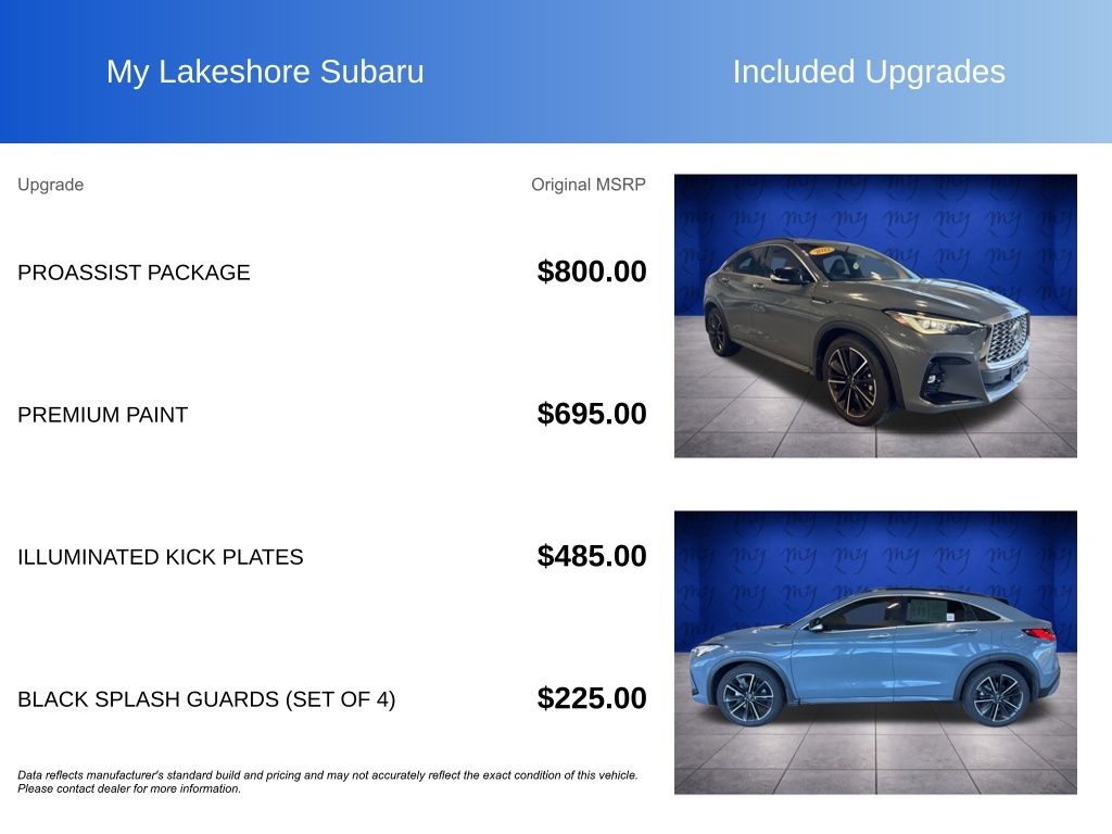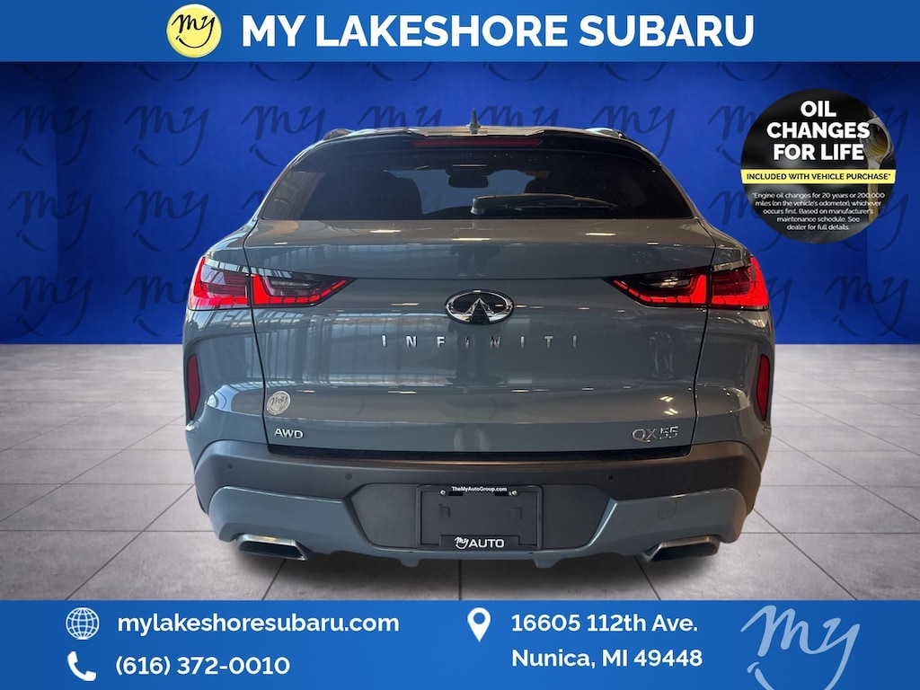 QX55 ESSENTIAL, Slate Gray, *ADAPTIVE CRUISE*, *ALL WHEEL DRIVE*, *APPLE CARPLAY & ANDROID AUTO*, *BLIND SPOT MONITORING*, *LANE DEPARTURE WARNING*, *LEATHER HEATED POWER SEATS*, *LOCAL TRADE*, *OIL CHANGES for LIFE*, Adaptive Front Lighting System, Blind Spot Intervention, Cube Design LED Headlights, Distance Control Assist, Intelligent Cruise Control, Lane Departure Prevention, ProASSIST Package. Slate Gray 2022 INFINITI QX55 ESSENTIAL AWD CVT I4