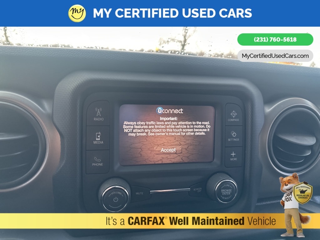 *SUPER BUY* ***2020 JEEP WRANGLER UNLIMITED SPORT S***, *VERY CLEAN* *APPLE CARPLAY & ANDROID AUTO*, *REARVIEW CAMERA*, *POWER DOOR LOCKS** 3.45 Rear Axle Ratio, Automatic Headlamps, Black 3-Piece Hard Top, Cloth Low-Back Bucket Seats, Deep Tint Sunscreen Windows, Freedom Panel Storage Bag, Front 1-Touch Down Power Windows, Leather Wrapped Steering Wheel, No Soft Top, Power Heated Mirrors, Quick Order Package 22S Sport S, Radio: Uconnect 3 w/5" Display, Rear Window Defroster, Rear Window Wiper/Washer, Remote Keyless Entry, Security Alarm, Speed Sensitive Power Locks, Sun Visors w/Illuminated Vanity Mirrors, Wheels: 17" x 7.5" Tech Silver Aluminum. MY Certified Used Cars of Muskegon is your #1 choice in Michigan to get the BEST PRICE on used vehicles and BEST value for your trade. The MY Certified Used Cars team is ready to provide you with a world-class experience, ensuring that you find the perfect vehicle that fits all your needs. Every vehicle has been through a full safety inspection completed by certified technicians and fully detailed. We sell many makes and models, Pre-Owned Vehicles with years from 2025-2024-2023-2022-2021-2020-2019-2018-2017-2016-2015-2014-2013-2012-2011-2010-2009-2008-2007 and all makes Audi, BMW, Chevrolet, Toyota, Volkswagen, Kia, Hyundai, Mercedes, Dodge, Chrysler, Jeep, Ram, Lincoln, Honda, Subaru, and many models like Bronco, Bronco Sport, Edge, Escapes, Expedition, Explorer, Fusions, Focus, Flex, F-150 Series, F-250, F-350, Super Duty Diesel Trucks, Maverick, Mustang MACH-E, Mustang, Ranger, Transit, Wrangler, Grand Cherokee, Grand Cherokee L, Wagoneer, Gladiator, Grand Caravan, RAM, RAM HEMI, and more. Take advantage of our VIP experience by calling 231-760-5618 to schedule a test drive. Read our customer reviews at www.mycertifiedusedcars.com/testimonials or view our entire selection of preowned vehicles at www.mycertifiedusedcars.com, or stop by today, located at 3692 Airline Rd. Muskegon, MI 49444. Billet Silver Metallic Clearcoat 2020 Jeep Wrangler Unlimited Sport S 4WD 8-Speed Automatic 2.0L I4 DOHC Clean CARFAX.