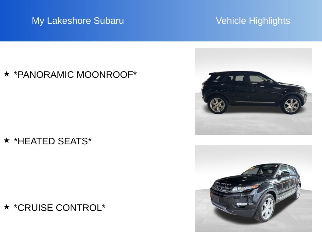 Range Rover Evoque Pure, 4WD, *CRUISE CONTROL*, *HEATED SEATS*, *PANORAMIC MOONROOF*. Santorini Black Metallic 2015 Land Rover Range Rover Evoque Pure 4WD 9-Speed Automatic 2.0L I4