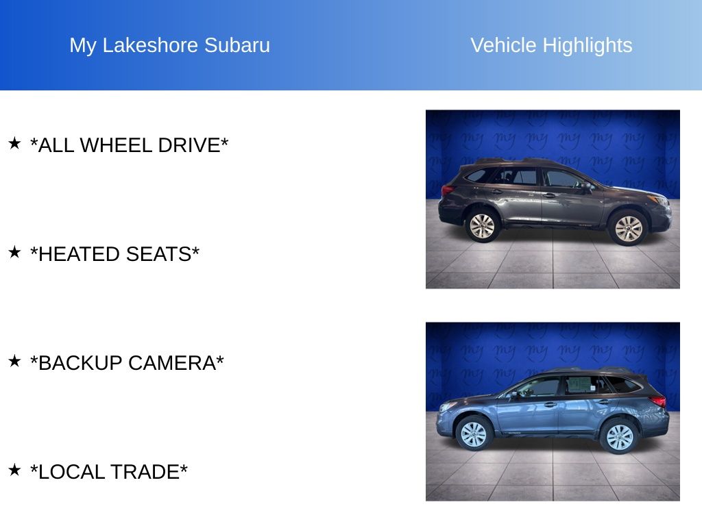 Outback 2.5i Premium, Carbide Gray Metallic, *ALL WHEEL DRIVE*, *BACKUP CAMERA*, *HEATED SEATS*, *LOCAL TRADE*. Carbide Gray Metallic 2017 Subaru Outback 2.5i Premium AWD CVT Lineartronic 2.5L 4-Cylinder DOHC 16V