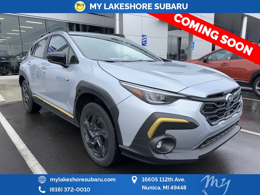 Crosstrek Sport, Ice Silver Metallic, *ALL WHEEL DRIVE*, *APPLE CARPLAY & ANDROID AUTO*, *BACKUP CAMERA*, *EYESIGHT Driver Assist*, *HEATED SEATS*, *LANE DEPARTURE WARNING*, *LOCAL TRADE*, *MOONROOF*, *OIL CHANGES for LIFE*, 10-Way Power Driver's Seat, Blind Spot Detection w/Rear Cross-Traffic Alert, BSD/RCTA & Power Driver Seat & Power Moonroof, Power Moonroof. Certified. Ice Silver Metallic 2024 Subaru Crosstrek Sport AWD Lineartronic CVT 2.5L 4-Cylinder DOHC 16V