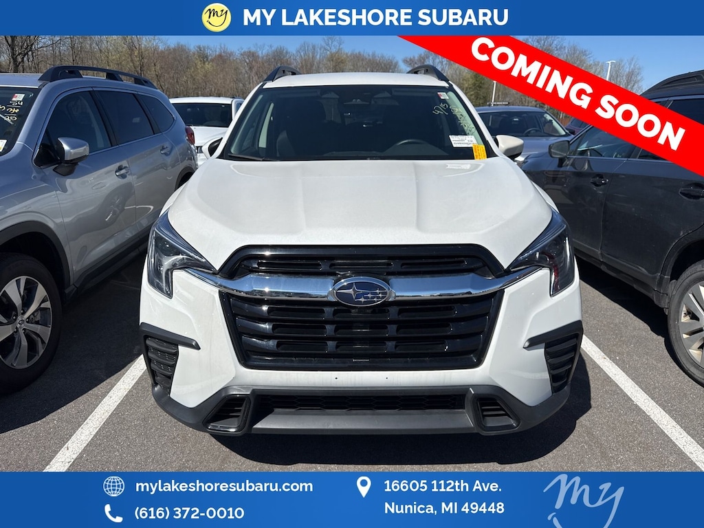 Ascent Premium, Crystal White Pearl, *ALL WHEEL DRIVE*, *APPLE CARPLAY & ANDROID AUTO*, *BACKUP CAMERA*, *BLIND SPOT MONITORING*, *EYESIGHT Driver Assist*, *HEATED SEATS*, *LANE DEPARTURE WARNING*, *OIL CHANGES for LIFE*. Certified. Crystal White Pearl 2025 Subaru Ascent Premium AWD Lineartronic CVT 2.4L 4-Cylinder DOHC 16V