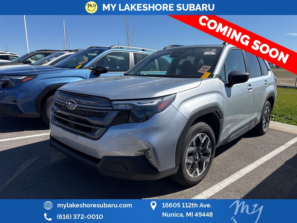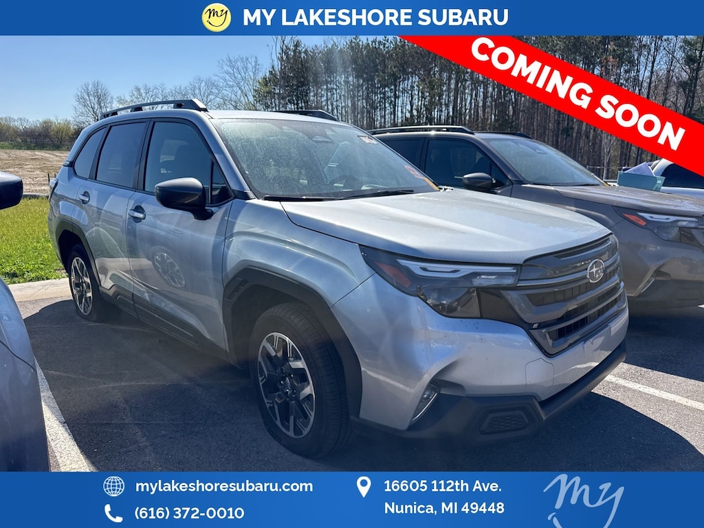 Forester Premium, Ice Silver Metallic, *ALL WHEEL DRIVE*, *APPLE CARPLAY & ANDROID AUTO*, *BACKUP CAMERA*, *EYESIGHT Driver Assist*, *HEATED SEATS*, *LANE DEPARTURE WARNING*, *OIL CHANGES for LIFE*, *PANORAMIC MOONROOF*, Standard Model. Certified. Ice Silver Metallic 2025 Subaru Forester Premium AWD Lineartronic CVT 2.5L 4-Cylinder DOHC 16V